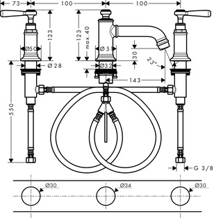 - consists of: 3-hole basin mixer, waste set