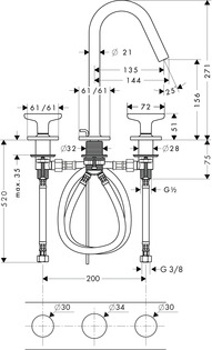 - consists of: 3-hole basin mixer, waste set