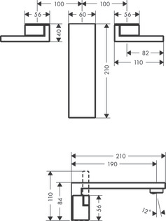 AXOR Edge 3-hole basin mixer for concealed installation wall-mounted with spout 190 mm and push-open waste set - diamond cut